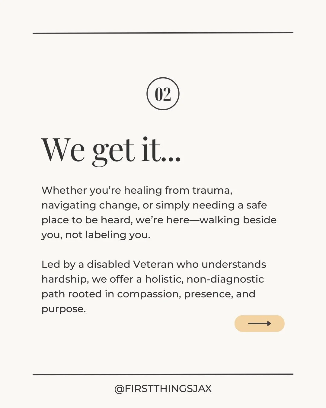 We are led by a permanently and totally disabled Veteran, his personal experience with trauma, resilience, and healing has shaped his approach to counseling.